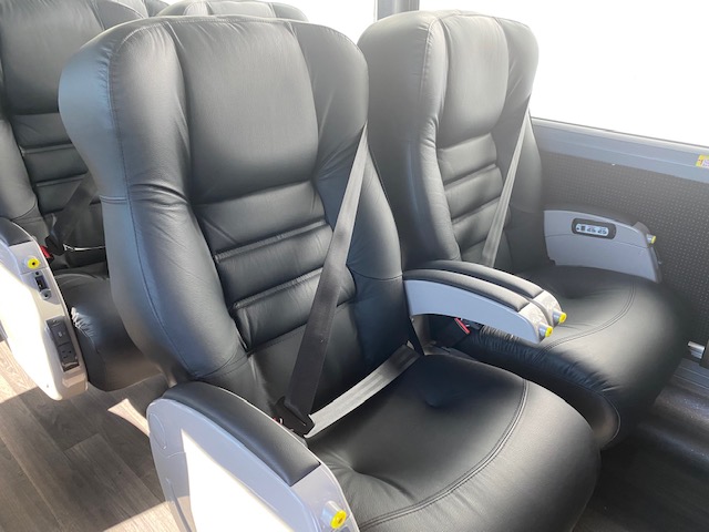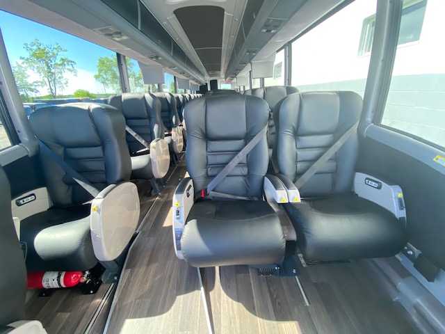 Our Experience Class Corporate / Team coach is the perfect alternative for the group that needs more personal space and amenities while traveling. The two plus one seating configuration offers a much wider seat with additional space between you and the passenger alongside you. The reduced seating capacity also features greatly expanded legroom. In addition to our wireless internet and power outlets for your personal devices, this coach offers satellite television and radio options, and Blueray and DVD players. Individual headphone jacks allow passengers to enjoy a variety of entertainment options at the same time.
